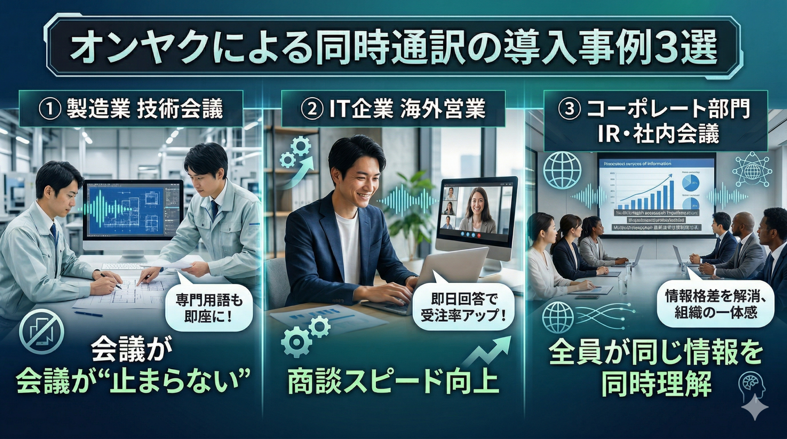 オンヤクによる同時通訳の導入事例3選|会議・商談・現場はどう変わったか