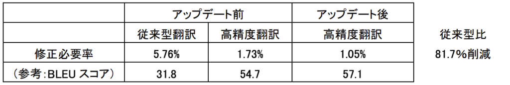 今回のアップデートは、当社の新ビジョン「人手の修正が不要な翻訳 AI を創る」の実現に向けてのステップとして、翻訳品質をさらに高め、人手の修正が必要な工数を大幅に削減しました。