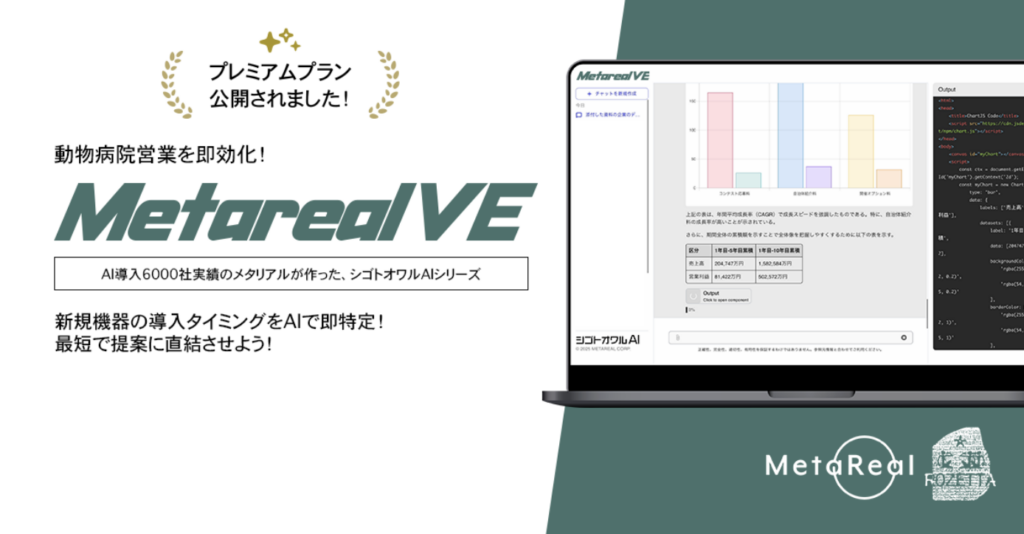 動物病院の新機器導入ニーズ分析AI エージェント「Metareal ヴェットイクイップ」プレミアムプラン2/10 提供開始