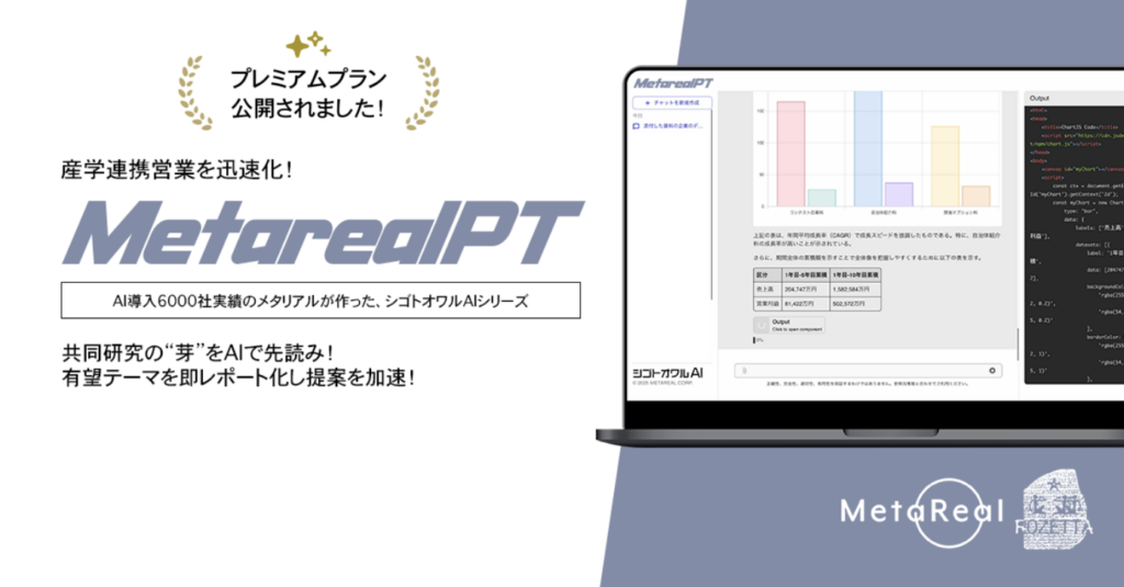 企業との共同研究意欲分析AI エージェント「Metareal リサーチパートナー」プレミアムプラン2/12 提供開始