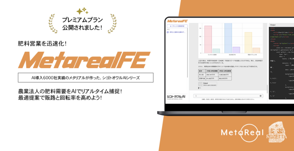 メタリアル・グループの株式会社ロゼッタ(代表取締役:五石 順一)は、農業法人の肥料需要予測 AI エージェント「Metareal ファーティライザートレンド」(以下、Metareal FE)のプレミアムプラン(月額5 万円(税込)、1日20 回・月200 回利⽤可能)を 2026 年 2月12日(木)より提供開始しました。
