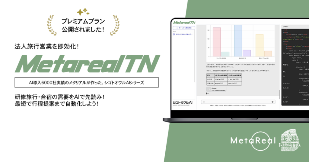 法人向け研修旅行需要分析AIエージェント「Metareal トラベルニーズ」プレミアムプラン2/17提供開始
