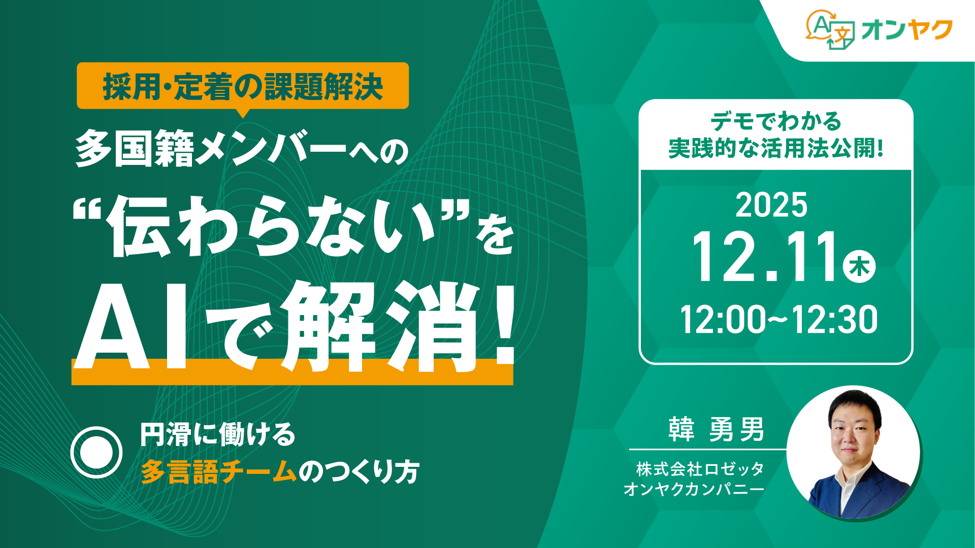 本ウェビナーでは、AIリアルタイム翻訳ツール「オンヤク」を活用して、
